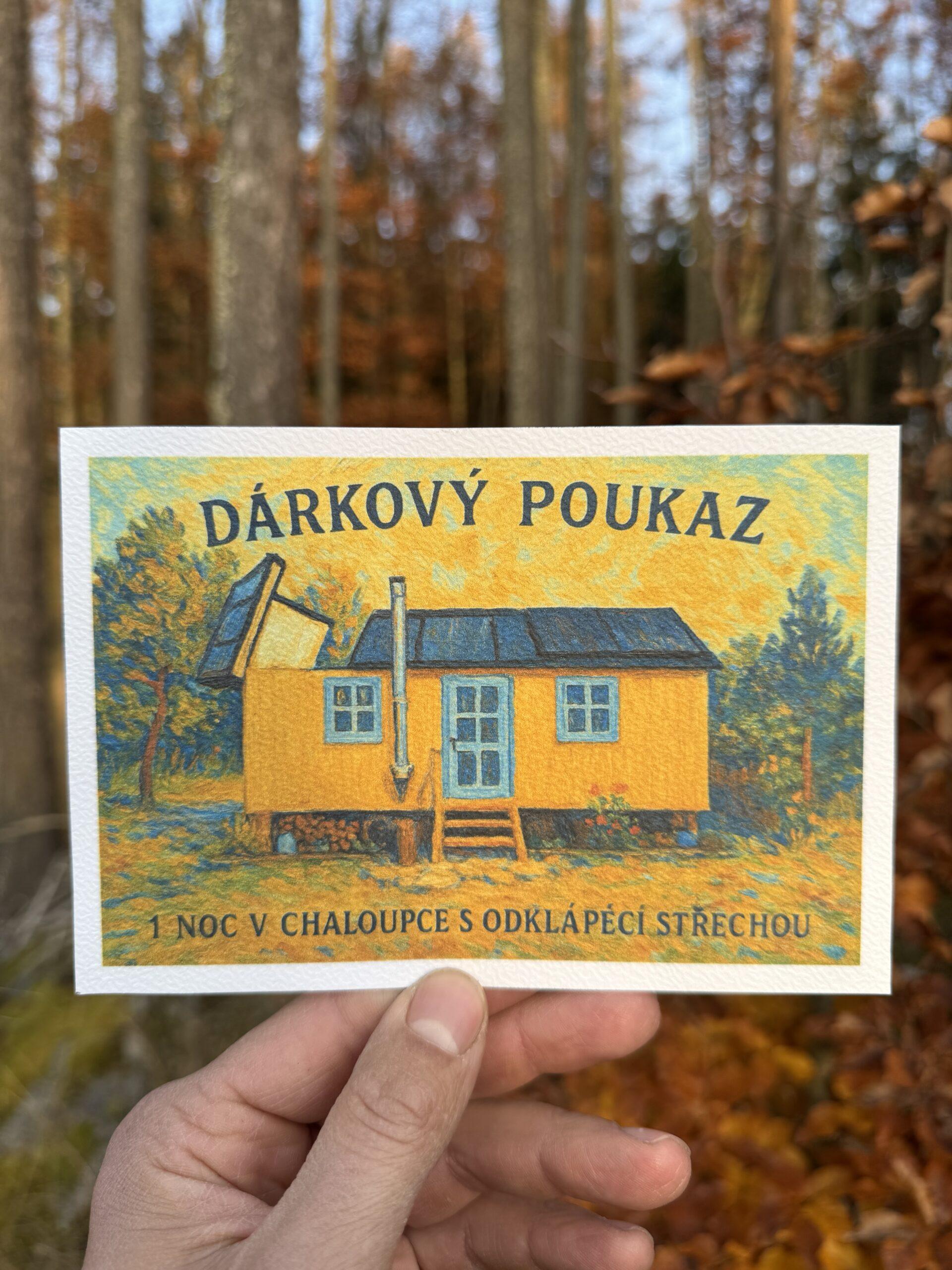 Dárkový poukaz – 1 noc v chaloupce s odklápěcí střechou